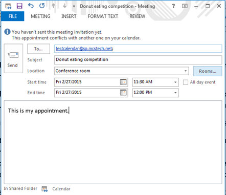 Your calendar is now set up to receive invitations by email. Test it, but creating a new appointment, and invite the list.