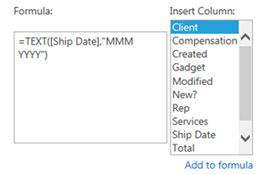 Under “List Settings” choose “Create Column”. Then name the column “Month”, choose “Calculated” for the type, and use the following formula: