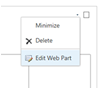 - While in edit mode, hover over the checkbox in the top right hand corner of the calendar web part and click on the tiny down arrow that appears. Then click on “Edit Web Part”.